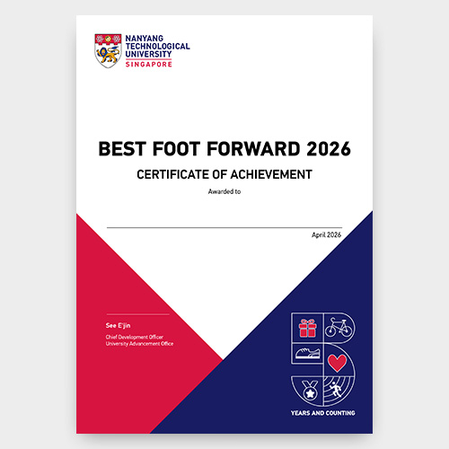Join us at The Wave, NTU on 6 Feb 2026 (Friday) if you have registered for the physical run. Distance completed in the X Campus Run will be automatically added to your virtual run distance. Find out more about the programme and the route here.Best Foot Forward (Virtual Run & Cycle)