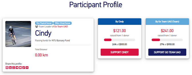 After completing your registration, you can choose to donate the pledged amount or rally your friends and family to fundraise the pledged amount.